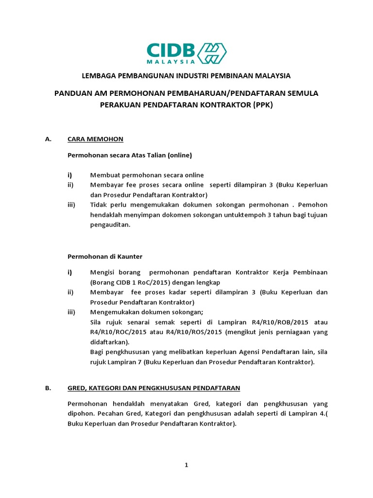 Cidb Permohonan Pembaharuan Ppk Pdf